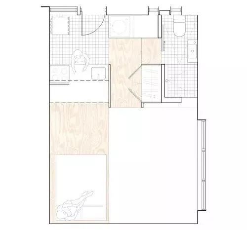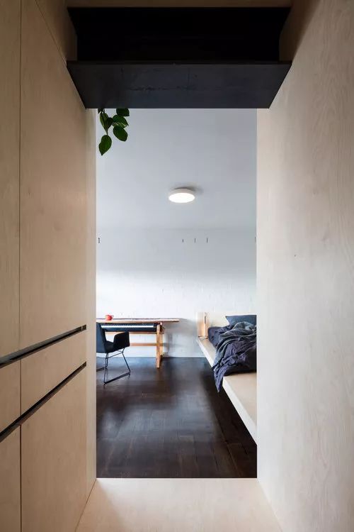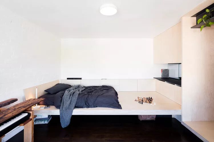 打造与隔墙一体的床板,上面仅放置一张床垫,留出了一大部分的活动空间。在床铺下方留出不少的空间,用于收纳物品再合适不过了。