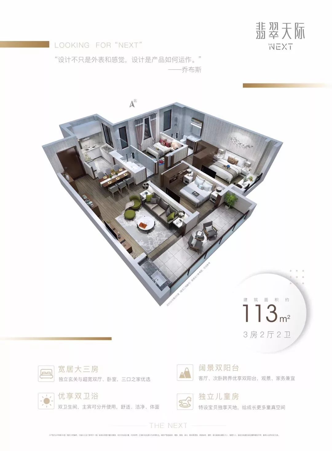 需要提醒大家的是,翡翠天际本次开盘首付6成起,最小113㎡户型入手门槛为238万。