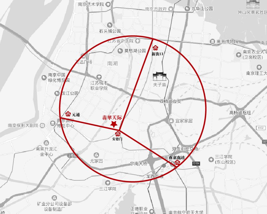 翡翠天际位于凤台南路与雨花西路的交界处,距离安德门地铁站直线距离约700米,可直达奥体中心、新街口、南京南站等。交通、商业、教育等生活配套齐全。