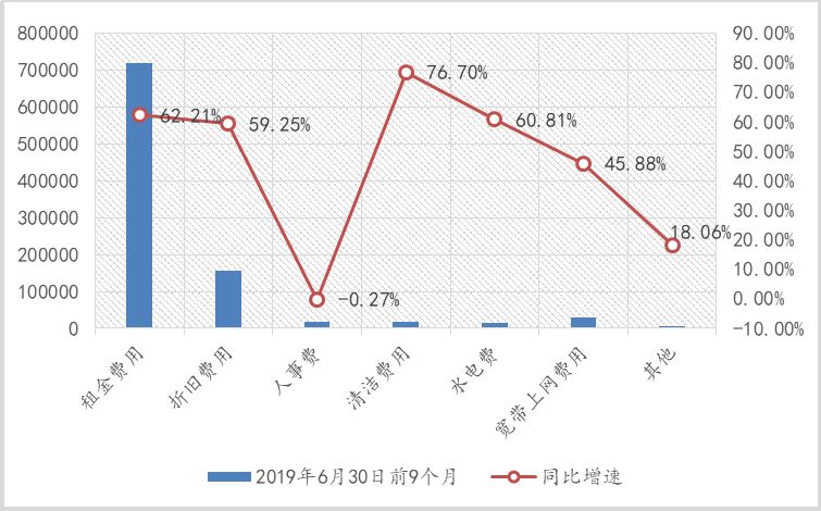 图:2019财年前9个月青客公寓承租费用构成及同比增速