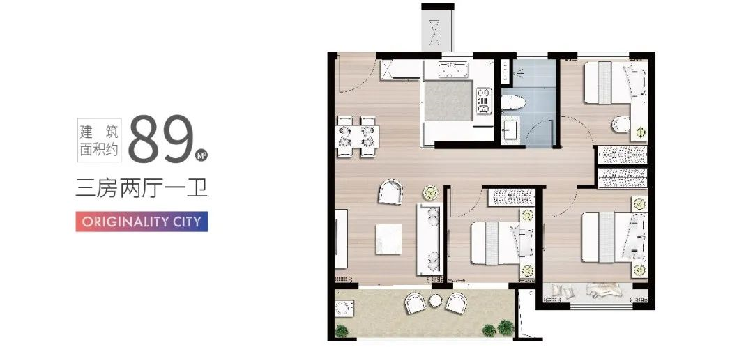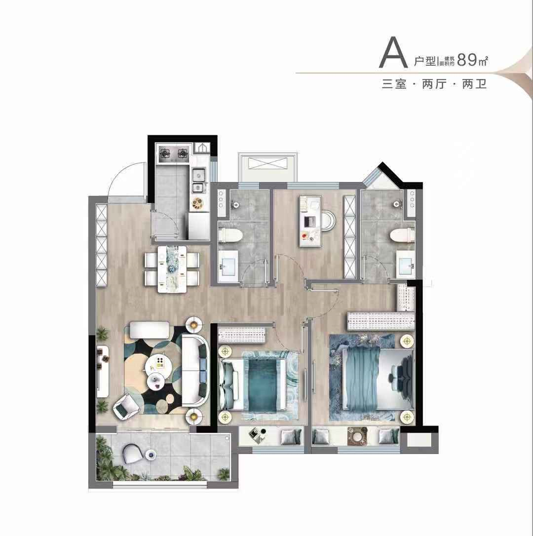 近期,项目在公开售楼处时一同公布了建筑面积约89、105㎡的户型图与样板间。