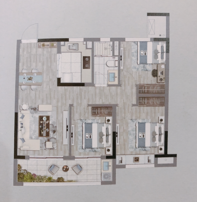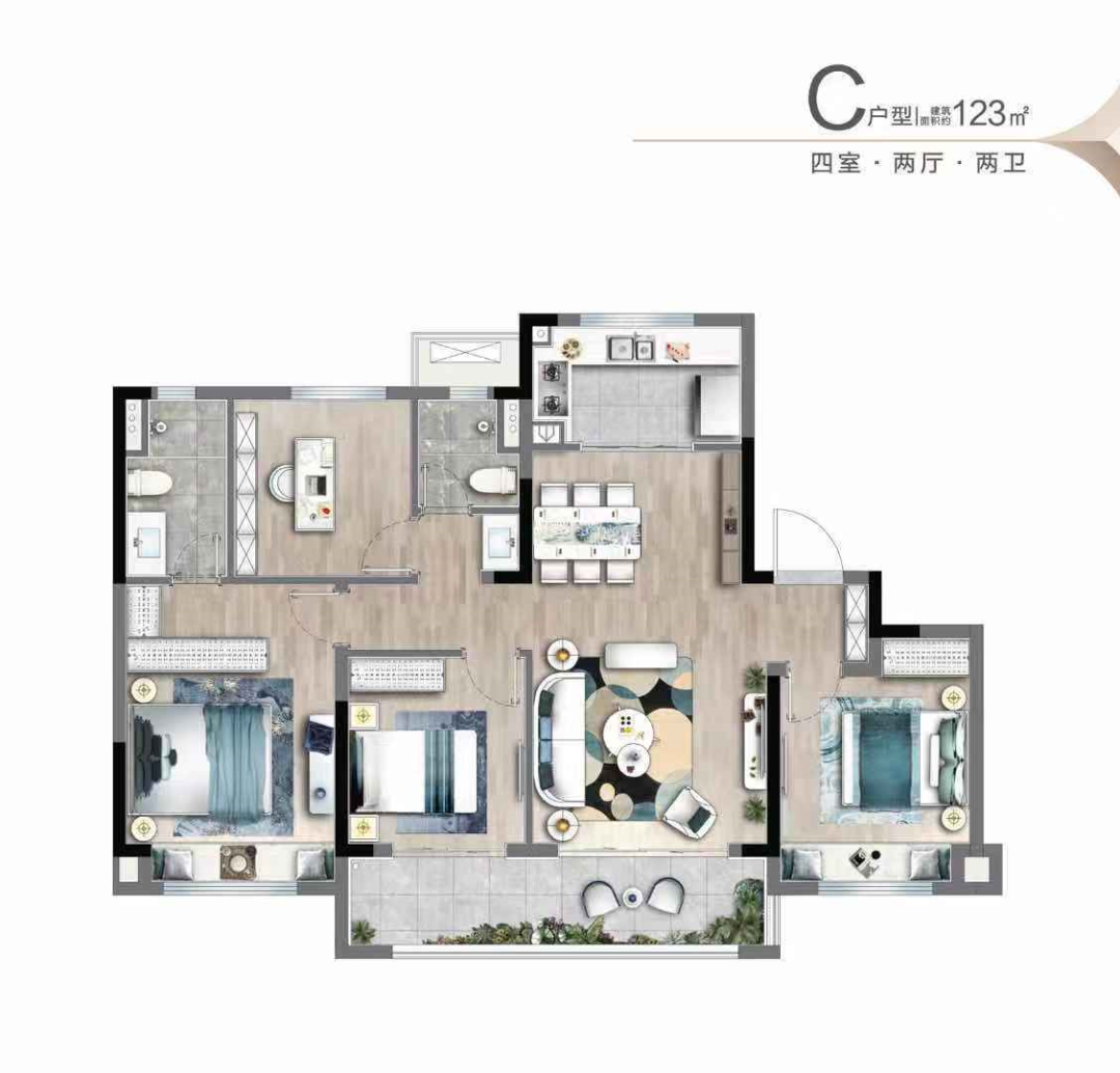 卓越大江此次的两个户型都十分讨喜,既保证了最基础的三代同堂,又满足了改善客群的需求。精装标准上,三大件中新风采用朗思威品牌,中央空调是海尔,地暖是博世的。厨房卫浴则配备了科勒、摩恩、方太等品牌。