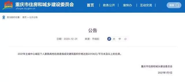 重庆以每年公布的房产税线为准,超过则征税。今年的房产税起征点为22106元/㎡。