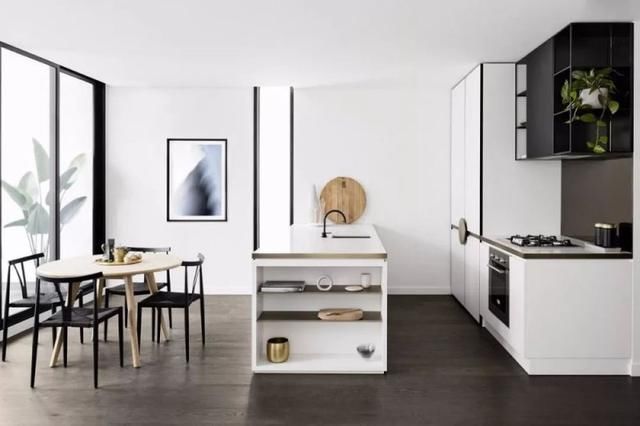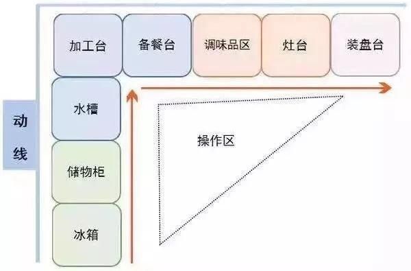 不管厨房是L型、U型、平行,只要形成金三角,做饭的活动都是在三条边上,就能保证你不会来回反复的走路去拿取、清理东西。