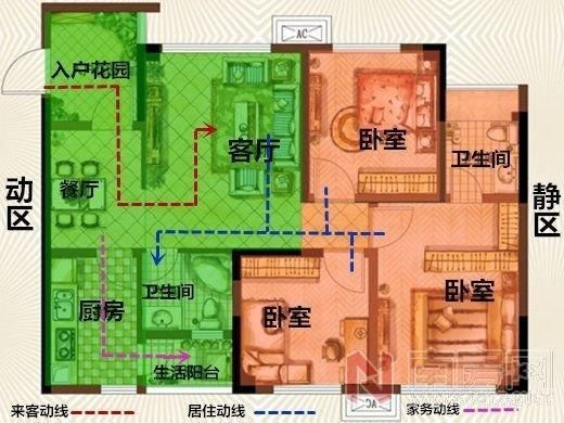 好的家居动线应该满足的条件:动静分区少交叉、路线越短越方便、做好收纳