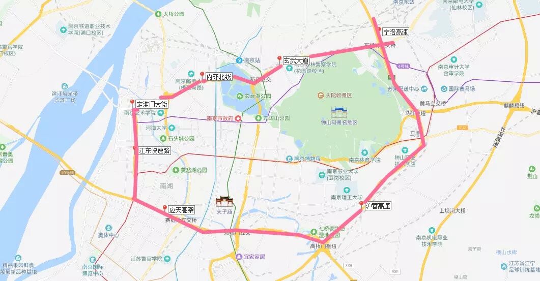 南京一环是由江东快速路、应天高架、沪蓉高速、宁洛高速、玄武大道、内环北线、定淮门大街构成的 " 井 " 字形快速内环。