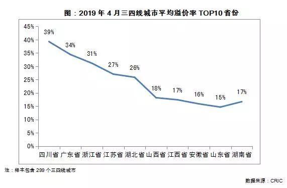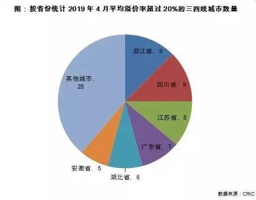 比较各省份三四线城市的平均溢价率来看,四川、广东、浙江三省平均溢价率超过30%形成第一梯队,与其他省份拉开较大差距。