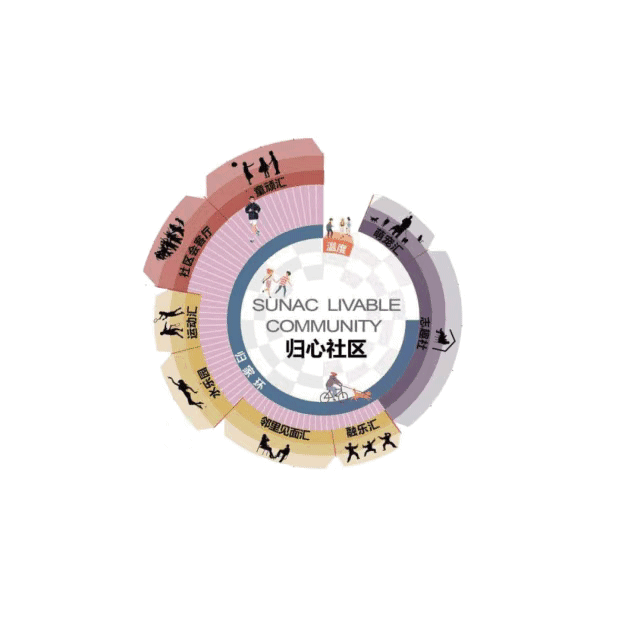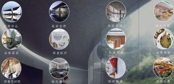 旭辉总结成为12个主题模块,还增加了艺术中心、社区书吧、活力市集、养老医疗等功能。