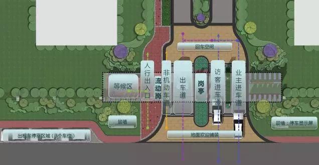 1、人车分流。小区入口必须要满足交通、通告、引导、展示等基本功能,休息功能就根据具体入口广场大小而定。