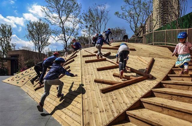 万科对儿童活动场地的年龄也划分的比较细,2-5岁、5-12岁有不同的组合。