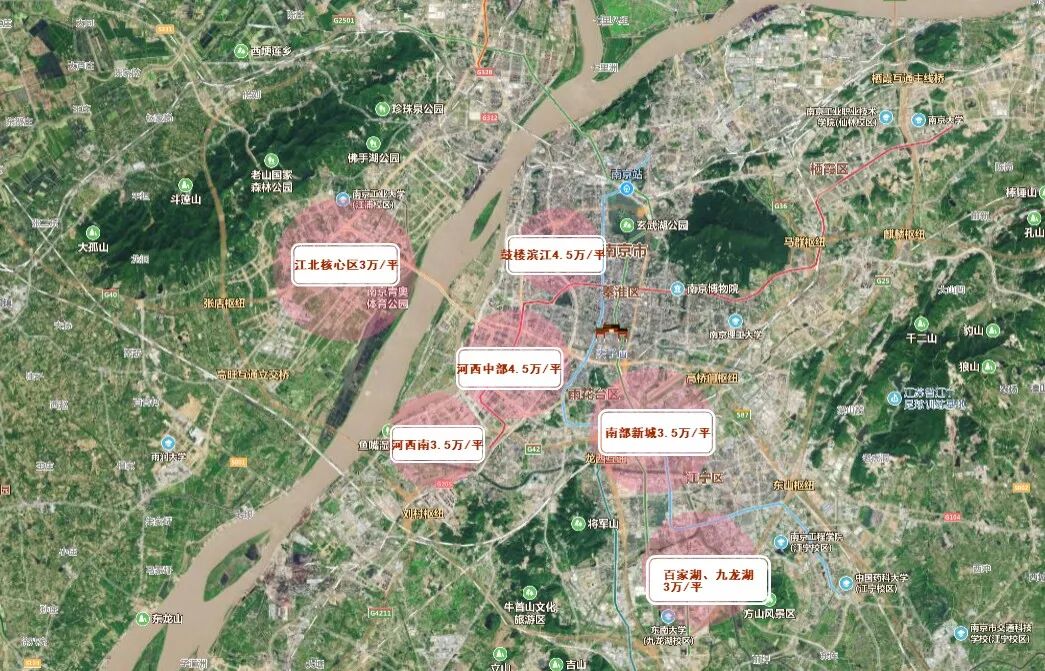 河西中、鼓楼滨江4.5万/平,河西南、南部新城3.5万/平,江北核心区、江宁百家湖九龙湖3万/平……随便买个100平的新房,也要300万起步啊!