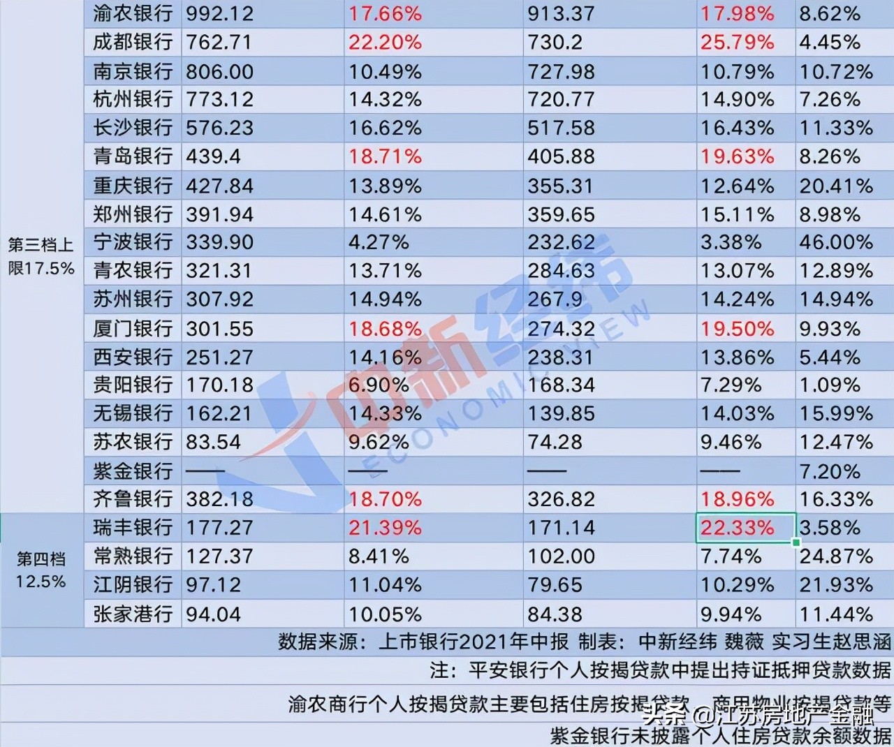 据9月初中新经纬对A股上市银行年中报的梳理数据,我们不难发现,目前仍有招商银行、兴业银行、北京银行、成都银行、青岛银行等10家银行房地产贷款占比超标。