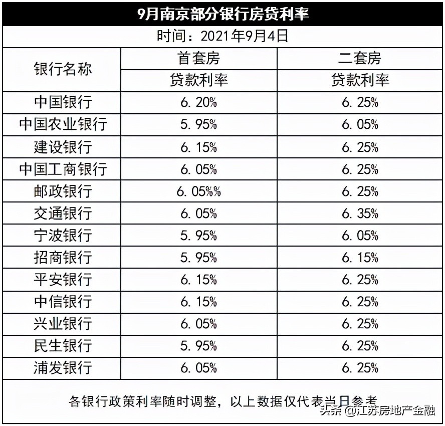 为此,小编再次摸排了多家主流银行,为大家整理了南京10月最新的房贷利率,以及和上个月的变动情况对比。